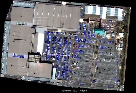 2019年11月10日の自動車台数カウント(※カウントした駐車場全体の一部を抜粋)©Vantor 協力Ridge-i